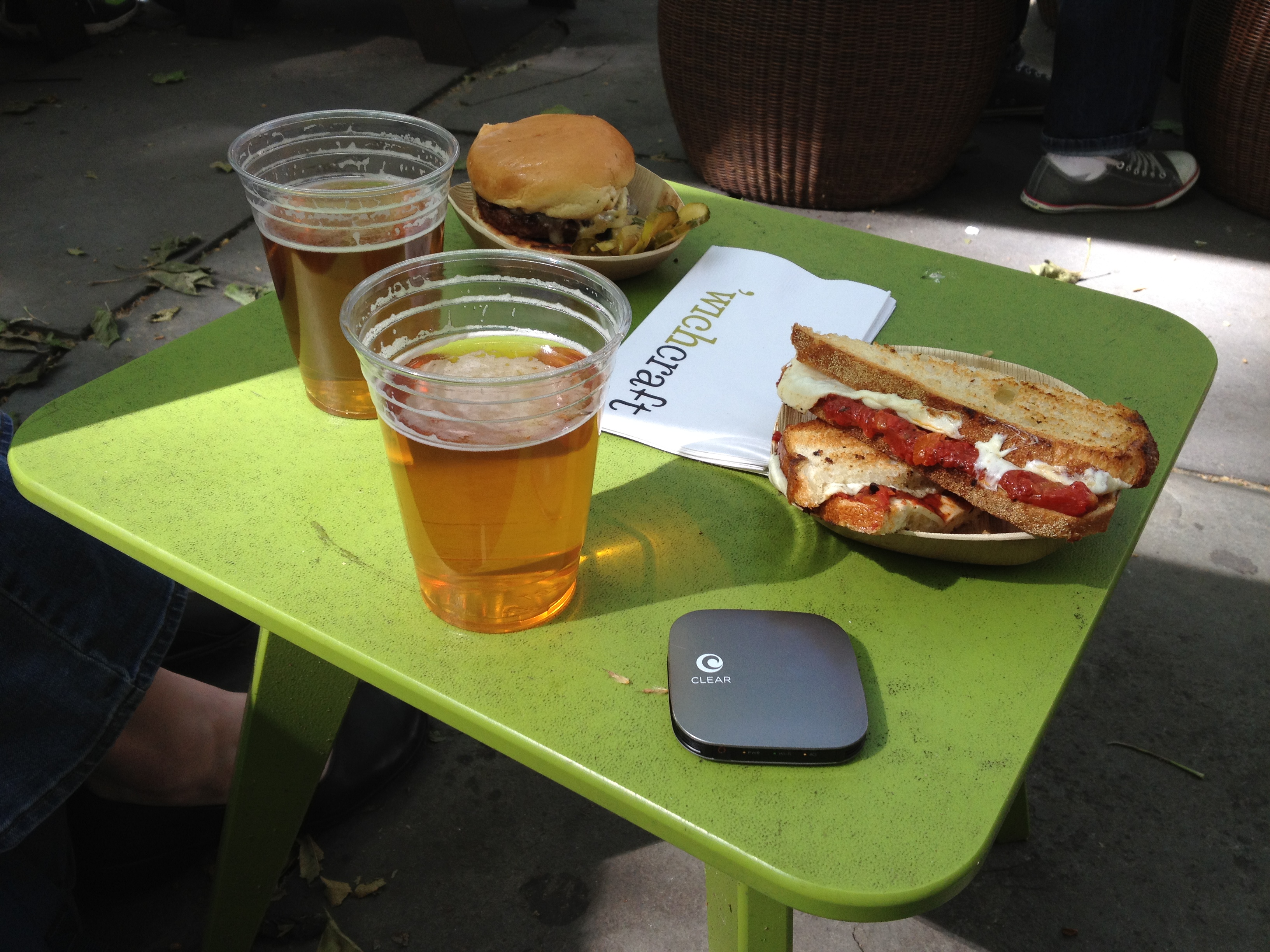 Migrated to Bryant Park, @Blazenhoff and I are sitting in the shade, having a late lunch & beer and blogging while connecting via @Clear.