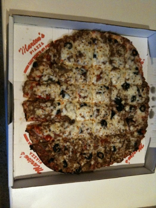 enjoying Dayton’s famous square cut pizza from Marion’s Piazza