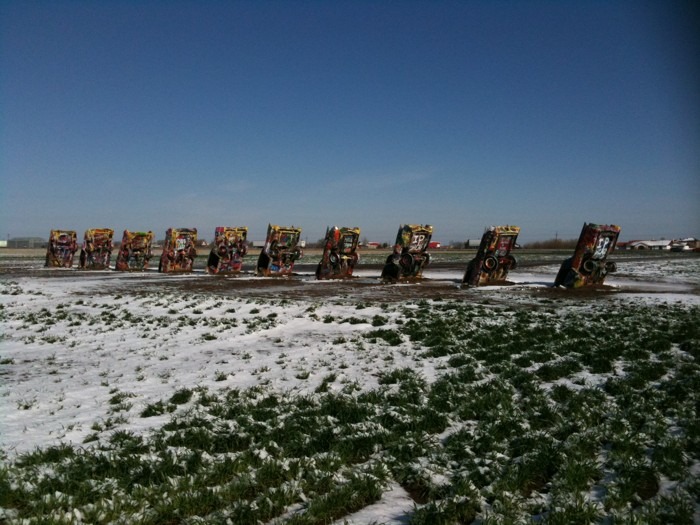 before leaving Amarillo we paid a visit to the Cadillac Ranch, which is currently surrounded by snow