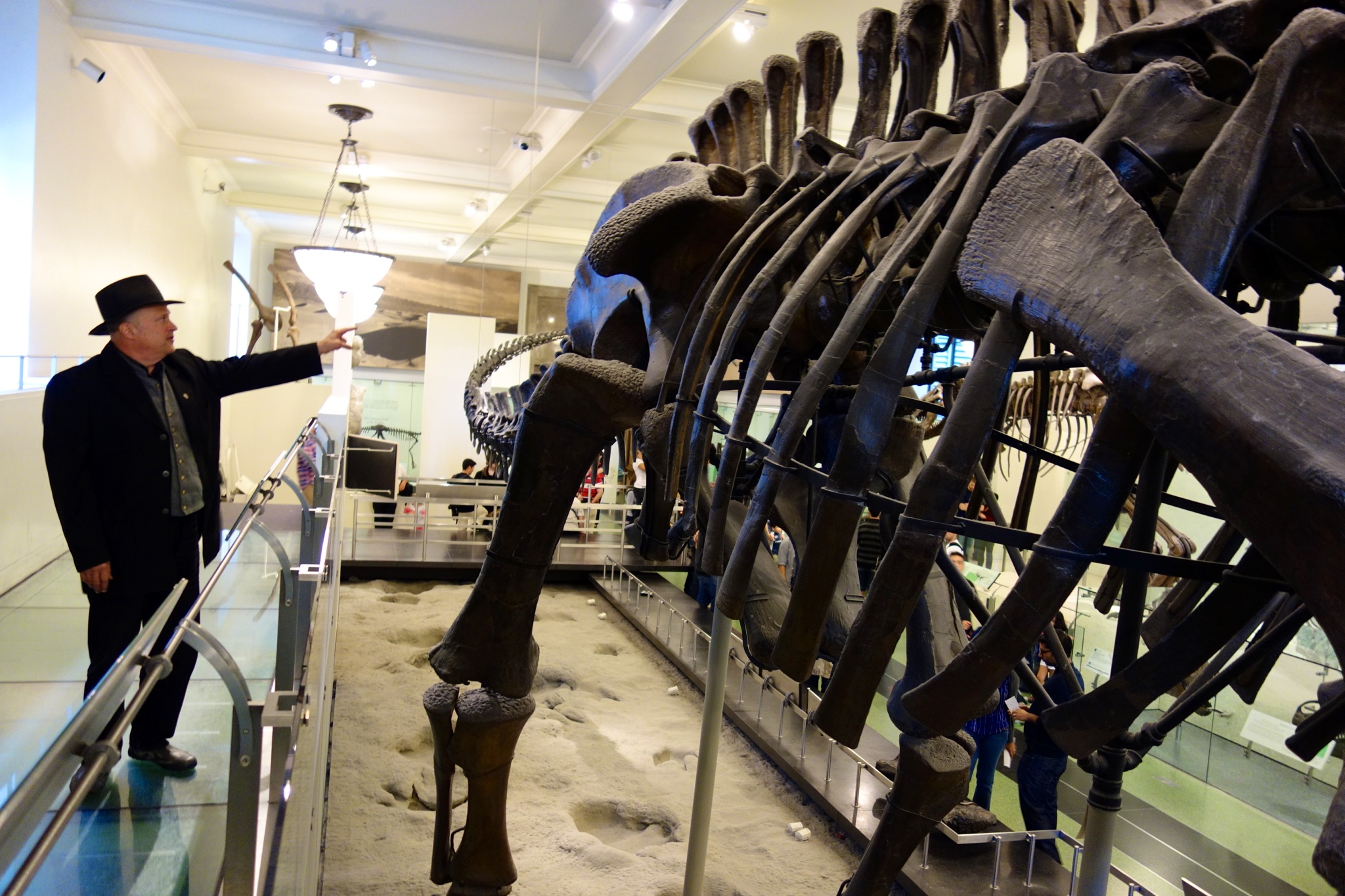 Dr. Hal introducing the Apatosaurus at the American Museum of Natural History